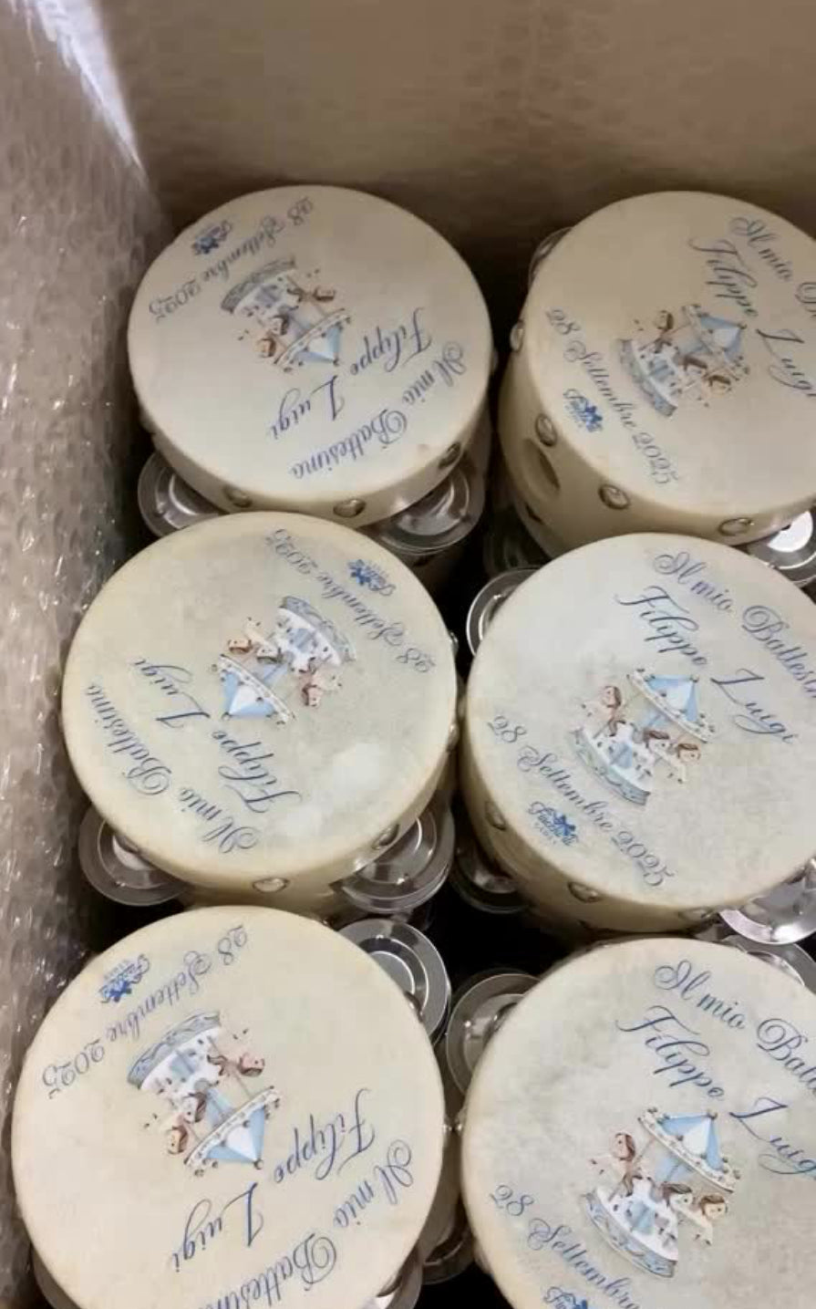 “Servizio rapido e preciso. Ho ordinato questi tamburelli per il battesimo di mio figlio e sono rimasta davvero soddisfatta.”